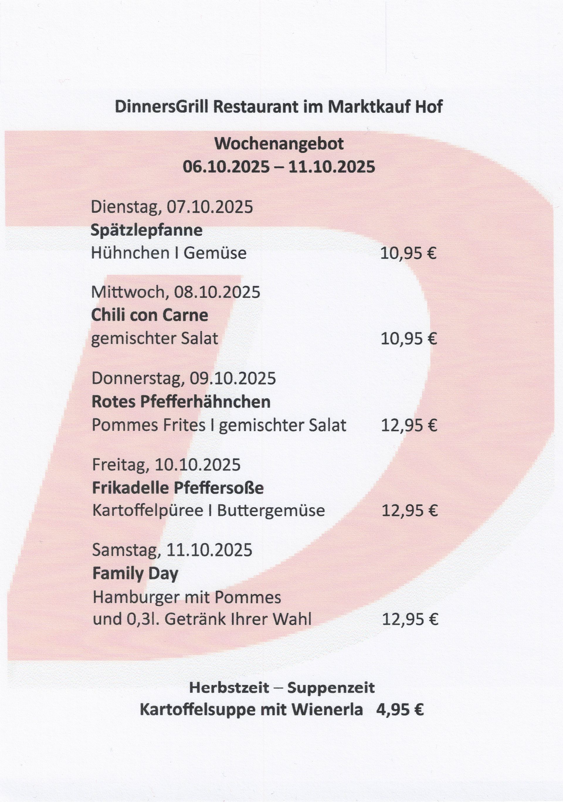 Die aktuellen Speisen Wochenpläne des DinnersGrill Restaurants im Marktkauf finden Sie hier.